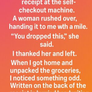 I accidentally left my receipt at the self-checkout machine. A woman rushed over, handing it to me with a warm smile. “You dropped this,” she said softly….