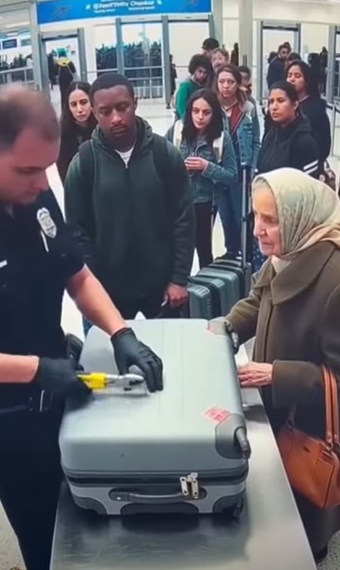 The elderly woman who owned the luggage waited patiently beside the inspection table. She appeared calm, though slightly tired from travel. Her gray hair was neatly pinned back, and she wore a long wool coat that seemed a little too heavy for the temperature inside the terminal.