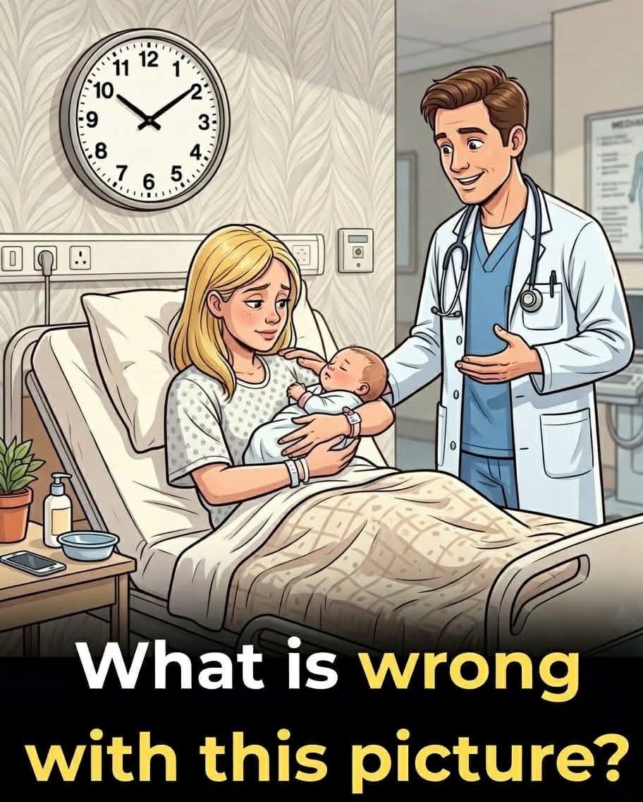 Because of this, visual puzzles and observation challenges can be surprisingly difficult, even when the image itself seems simple. Imagine a peaceful scene inside a hospital maternity room. A new mother sits comfortably while holding her newborn baby, and a doctor stands nearby checking on both of them. Medical equipment is neatly arranged around the room, and everything appears calm and routine.