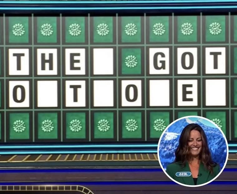 Choosing “Phrase” as her final category, she was joined on stage by her husband, Andy, who watched anxiously as the puzzle board filled in. After receiving the standard letters — R, S, T, L, N, and E — Graham selected C, G, H, and O. The board revealed a maddening setup: “THE_ GOT O_T_O_E_.”