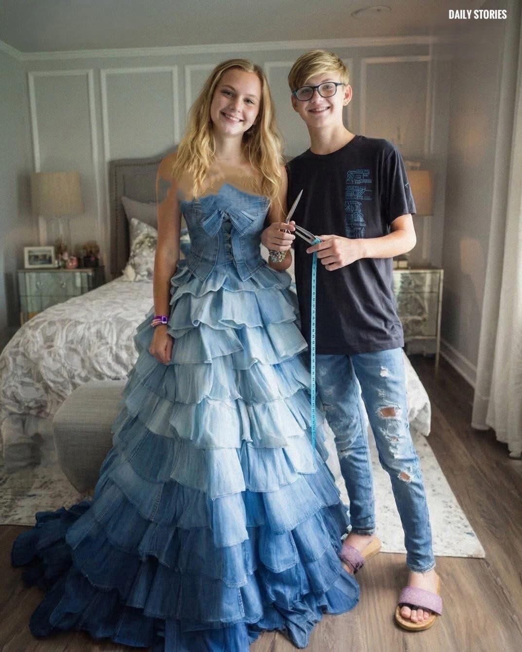 I was seventeen the year my little brother made me a prom dress out of our late mother’s jeans, and by the end of that night, the whole school knew exactly what kind of woman my stepmother was. My brother Noah was fifteen. He had always been quiet in the way people mistake for softness, but there was steel in him when it mattered. Our mom died when I was twelve. Dad remarried Carla two years later, and when he died of a heart attack last year, the house changed faster than grief could settle. Carla took over everything at once—the bills, the mail, the bank accounts, the locks on the filing cabinet, the tone of every room.