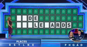 The duo was tasked with solving a two-word puzzle in the “Places” category. They had selected additional letters—B, H, A, G, and D—but were left staring at the incomplete phrase: _ _ DE _ _ _ LE _ _ ARDS. While they managed to figure out “Wide,” they couldn’t piece together “Boulevards” in the 10-second time limit.