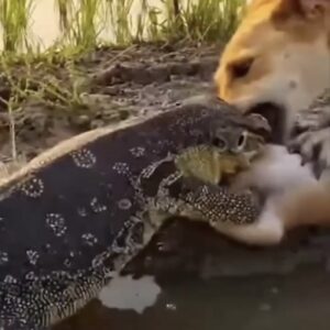 A rare and dramatic scene has been captured on video, showing a cat confronting a massive predator near a water-filled field. The intense moment highlights the raw…