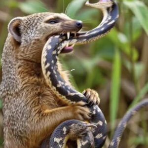 In a dramatic moment, a brave meerkat grips a striking snake, showing incredible courage and quick reflexes, This powerful scene highlights the intensity of survival in the…